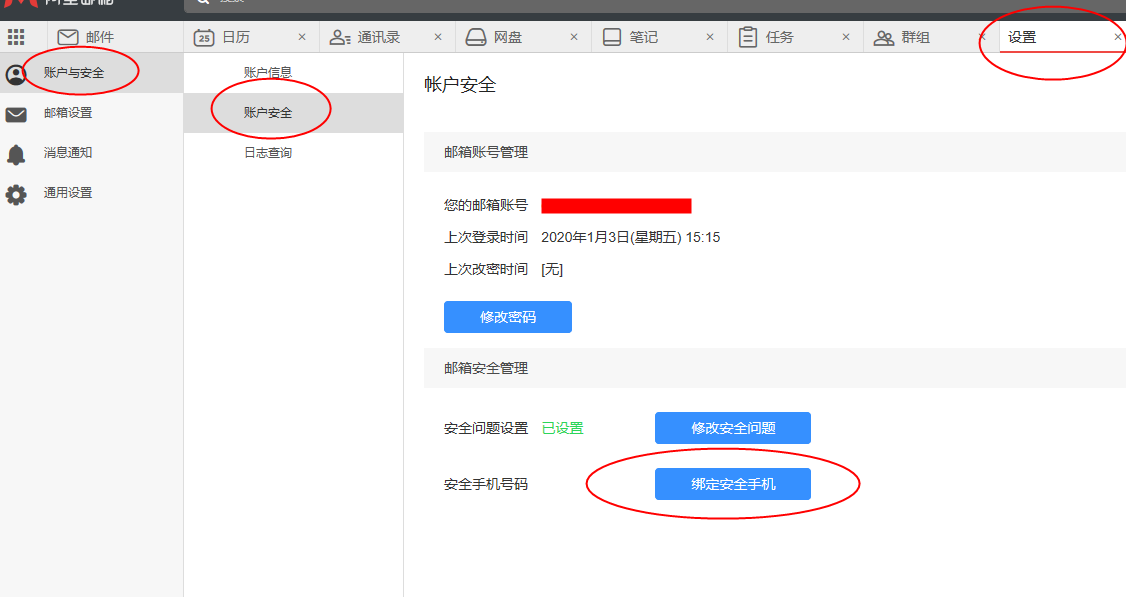 1、您登录成功webmail后,可以在右上角中选择“邮箱设置”,在左侧的“账号安全”中可以选择“绑定手机号”