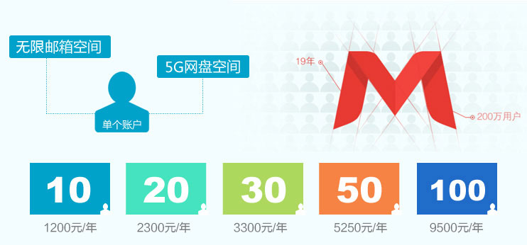 邮箱型号 | 用户数梯度(人) | 邮箱价格(单用户价格) |